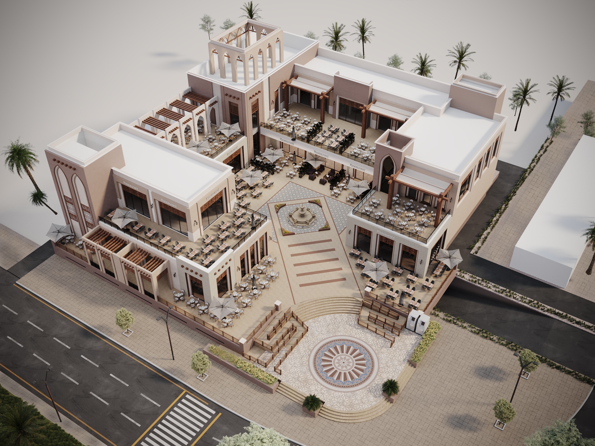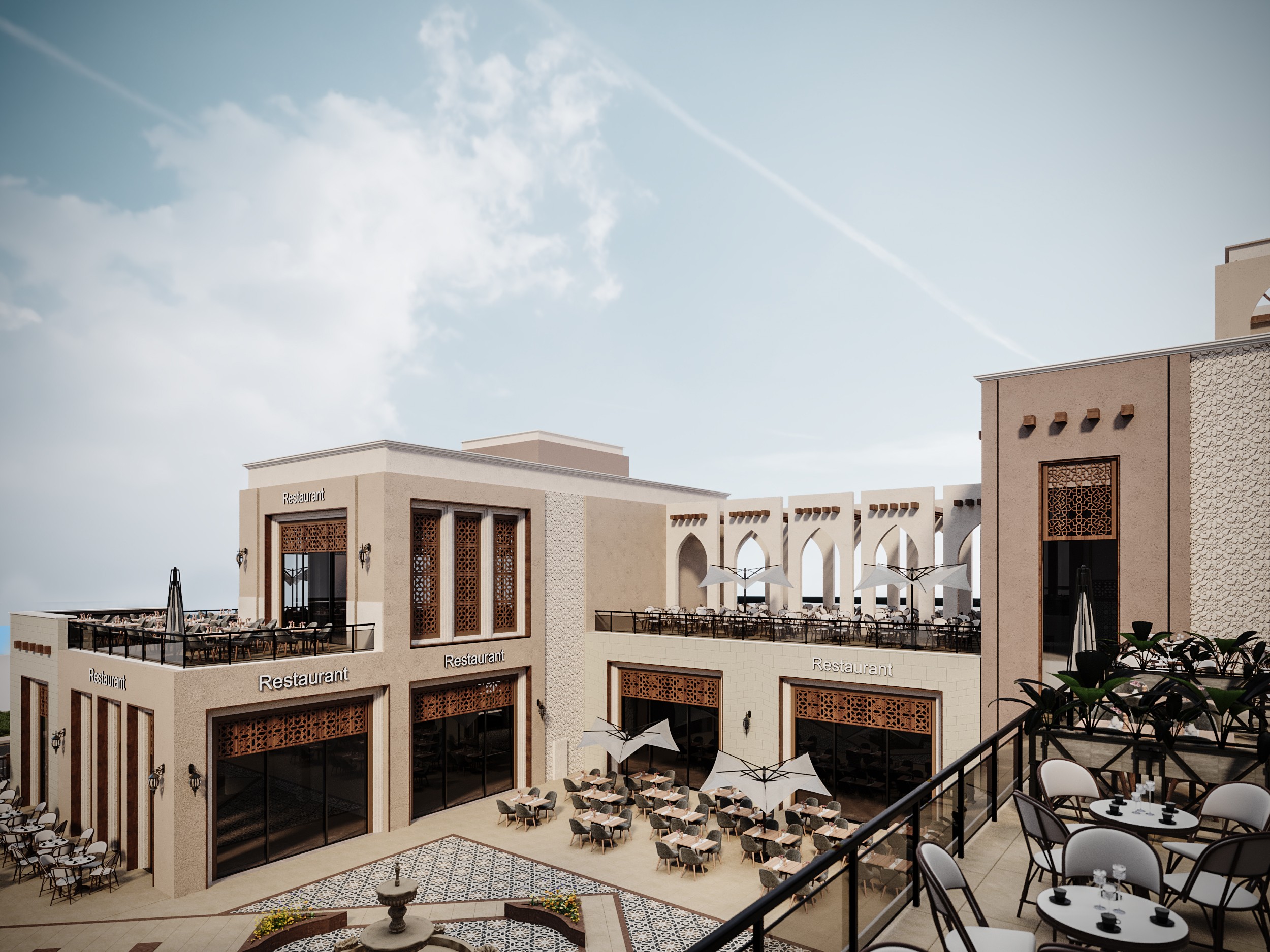 The project is a commercial mall over land area of 2000 m2 and consist of Ground floor over 1440 + First Floor over 810. Both floors are oriental restaurants