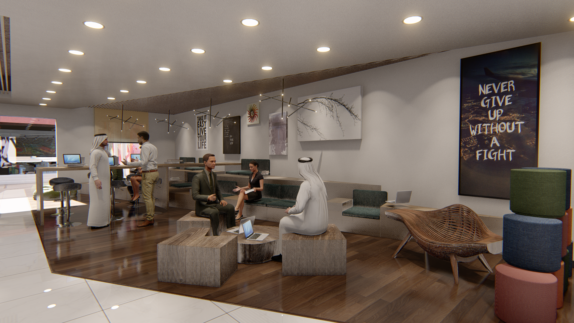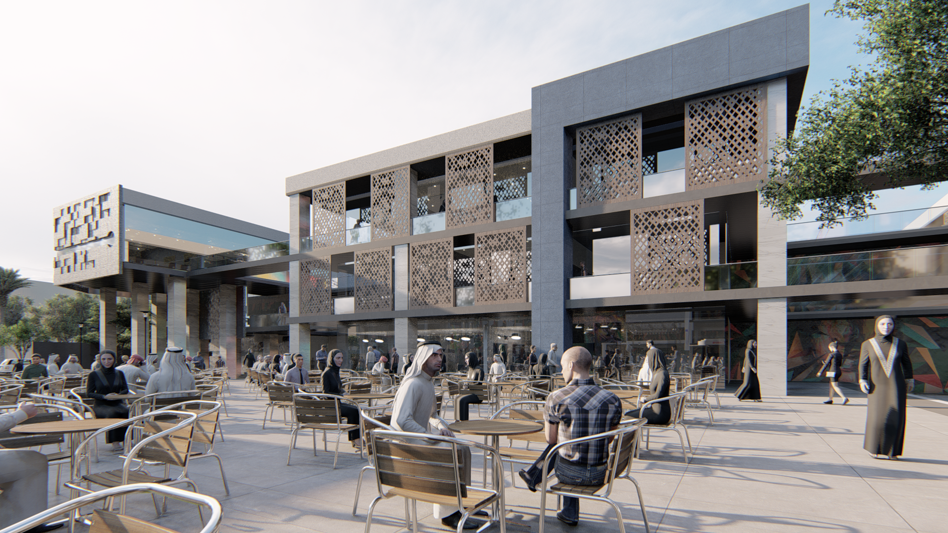 The project is meant to be a branch of the Greek Campus in Bahrain by adaptively reusing the Bahrain youth center. The concept was to enhance the identity of the Greek Campus as a container for innovative ideas by projecting the “circuits” in the logo as “glyphs” on a mystical container which surrounds the inner court where the users share ideas and work together in a creative atmosphere.