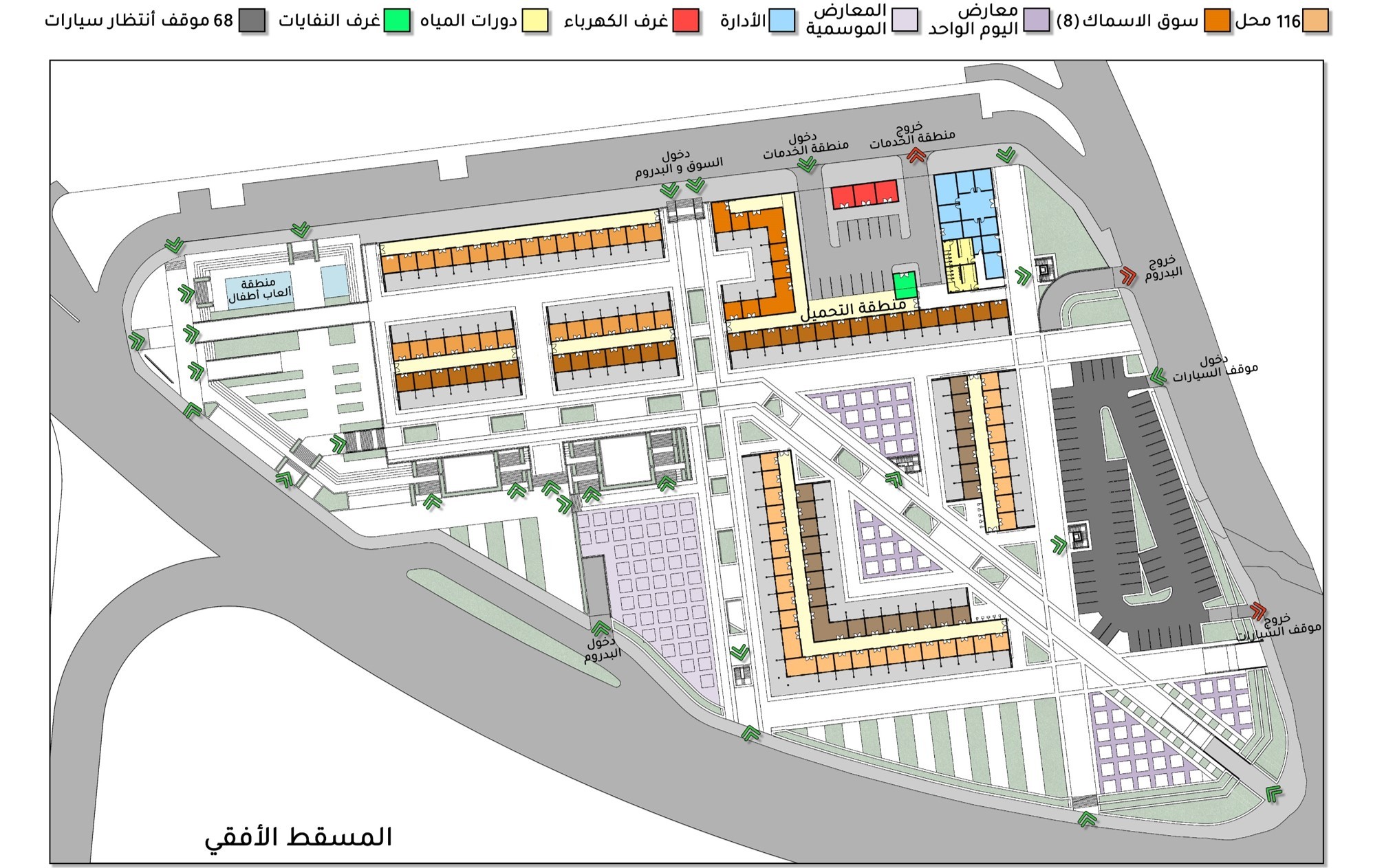 The project consists of 232 Car Parking Spaces - 72 Open selling Spaces - 18 Storage -Rooms Restrooms Display Stands Services